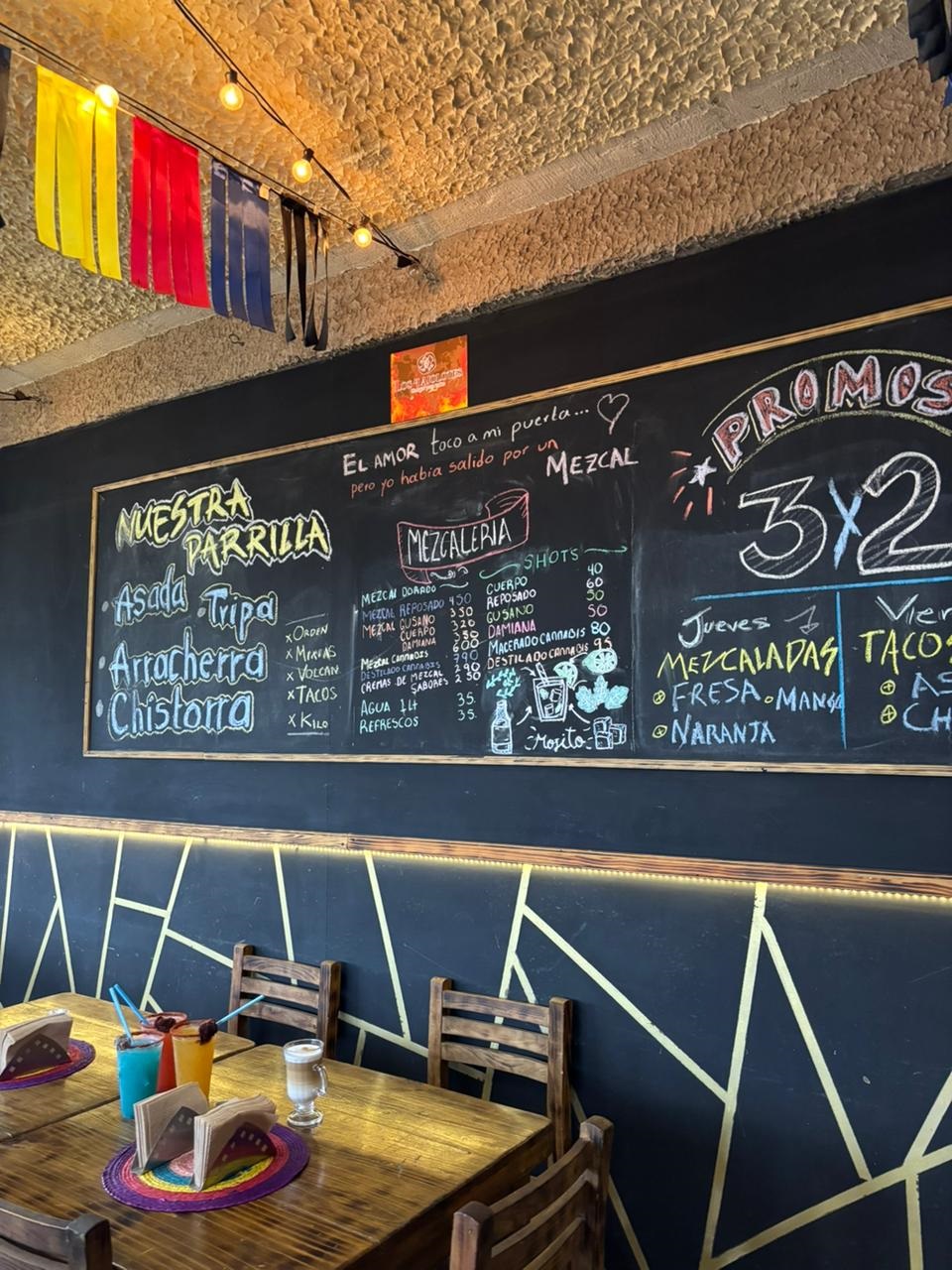 Además de bebidas como mezcal guerrerense, maguey 100% espadín, mañezcaladas, micheladas, refrescos, guas frescas de frutas y café’s (americano, capuchino, latte)