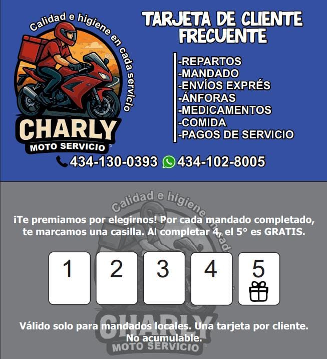 Moto Servicio Charly te lleva lo que necesites, rápido, seguro y con calidad.